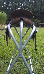 Thoroughbred "Made in Walsall, England" 17", 6" gullet, hunter/jumper saddle. Well loved, some scuffs, perfect for schooling. Fittings as shown.